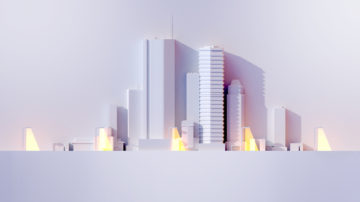 We used a white backdrop for the action to unfold, introducing the 3D elements one by one. Wind turbines, cars, houses and drones are depicted realistically, but stylized, as if modelled from white clay.