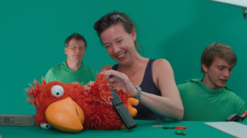 We started by filming the puppets in a studio with a team of professional puppeteers.