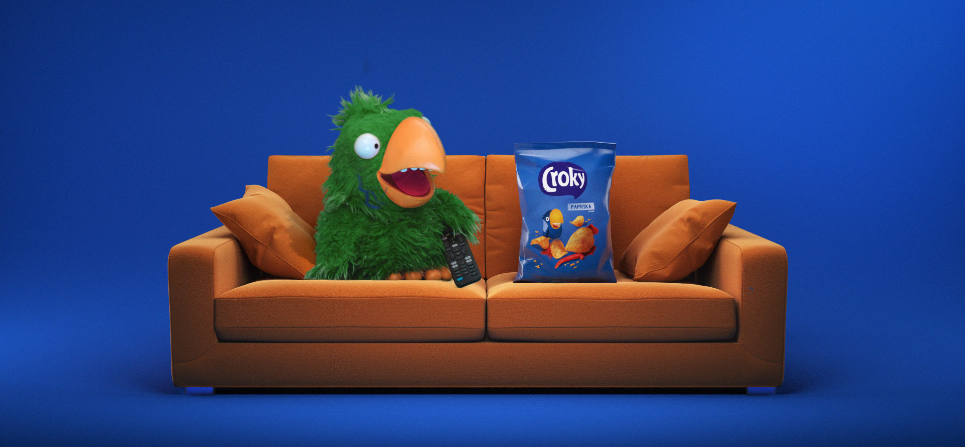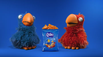So, what did we go for? The Croky parrots star in short, funny scenes together with only one thing in mind: eating crisps!