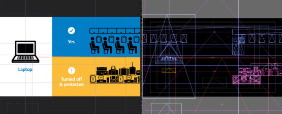 This project was all about illustrating clear and meaningful information about legislation governing drones and electronic devices on flights, answering simple questions such as what can you do with your drone, and what can you not do? Which items can you carry with you on a plane, and which ones must stay behind or go in the hold?